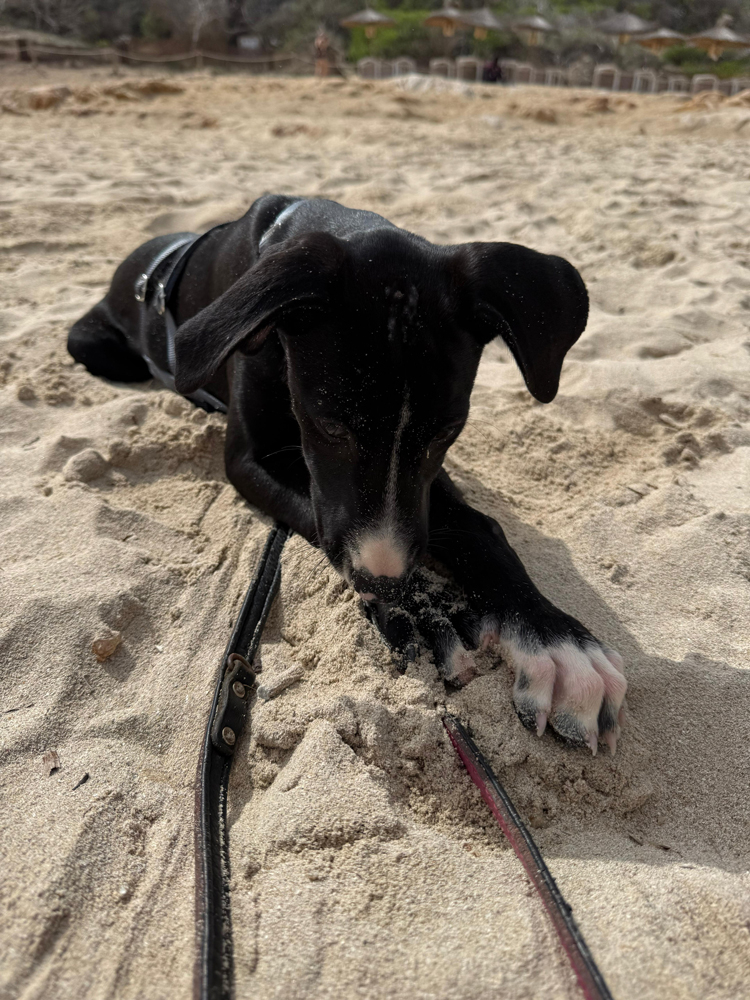 Unsere zarte Emma ist eine der beiden Hündinnen aus dem Wurf. Während ihre Geschwister neugierig und voller Tatendrang die Welt erkunden, ist Emma eher die vorsichtige Beobachterin. Sie schaut sich Situationen gern erst einmal in Ruhe an, bevor sie sich öffnet. Doch wenn man ihr ein bisschen Zeit und Sicherheit schenkt, taut sie auf – und dann zeigt sie eine ganz liebe, verschmuste Seite.